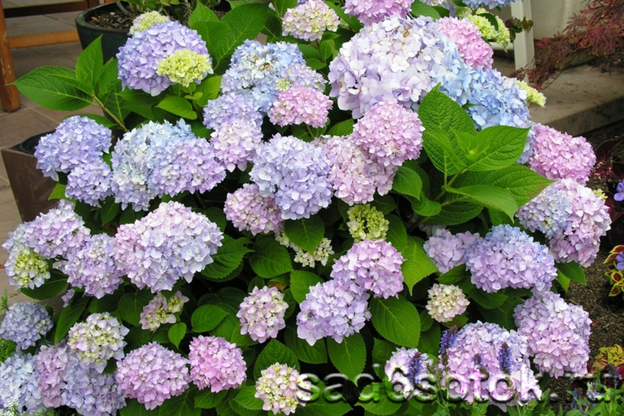 Виды окрасок зависят от уровня рН, на кислой почве растут цветы с синим окрасом, потому что там содержится алюминий, который впитывает в себя растение, на щелочной почве – розовые или сиреневые, а в нейтральной – белые или кремовые. Поэтому если нужно создать разноцветные клумбы, стоит лишь изменить кислотность почвы под каждым отдельным кустом.