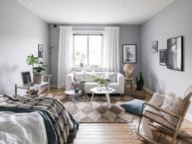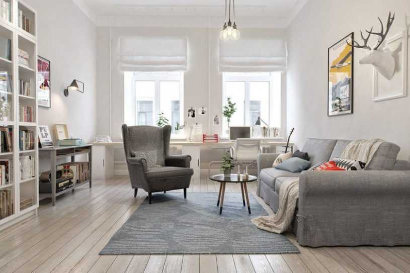 Скандинавское направление подойдет для приверженцев минимализма. С его помощью создают комфорт в доме. От владельцев жилья не потребуется много финансов для реализации задумки, скандинавский интерьер гостиной не терпит излишеств. Он отлично смотрится в малогабаритных квартирах