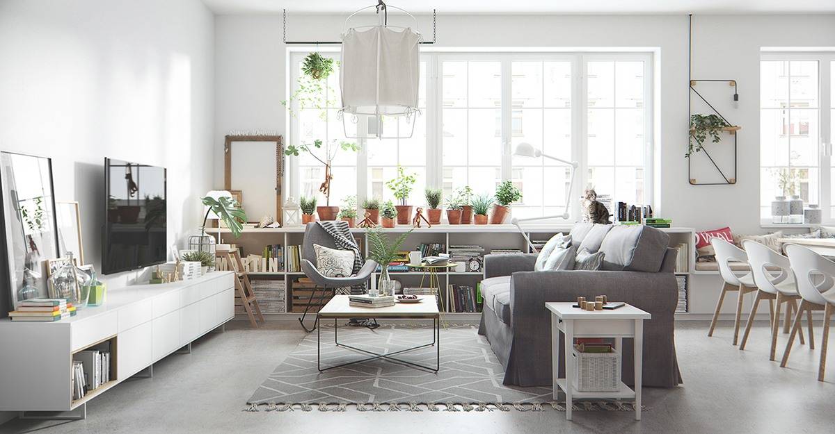 Великолепно дополняют скандинавский интерьер зеленые растения и полезные мелочи