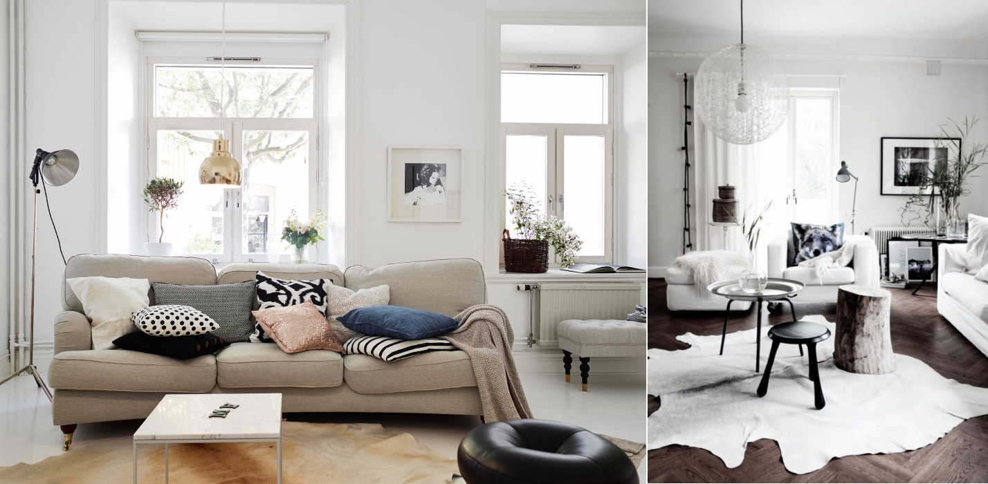 Нейтральность в узорах и принтах – они либо отсутствуют, либо ненавязчивы и имеют нейтральный характер. В Сканди-интерьерах наблюдается строгая геометрия форм мебели, интерьерных подушек, ковров, настенных картин или панно, рисунков на обоях, пледах или шторах, а также принтов (ромбы, трапеции, клетка, квадраты, зигзаги, арабеск) и т