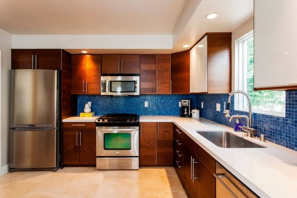 Кухня с угловой плитой – непростой, но интересный вариант дизайна, позволяющий создать комфортную рабочую зону.