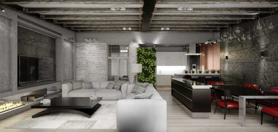 Основные черты оформления дизайна кухни-гостиной в стиле лофт