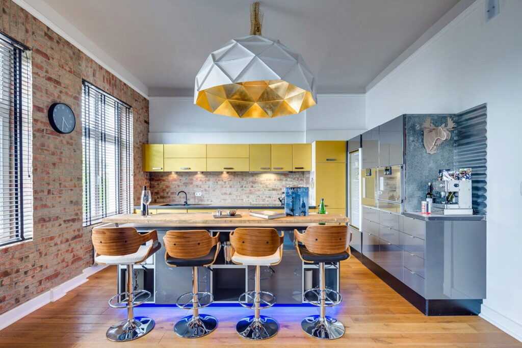 В первозданном варианте стиля лофт невозможно представить такой цвет в интерьере. Но прогресс диктует свои правила. Многие дизайнеры интерьеров экспериментируют в своем творчестве. Смешивают разные стили и сочетают несочетаемое. Вот и эксперимент с желтым в стилистике лофта оказался удачным. Желтый используют в акцентах. К примеру, можно оформить целую стену в таком оттенке и она станет главным ярким центром интерьера.