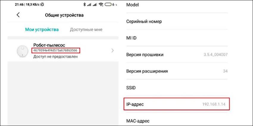 После установки улучшенной вариации Mi Home нужно добавить туда пылесос и последовательно выбрать пункты меню «Профиль», «Доступ», «Доступ к устройству». На открывшейся вкладке вы найдете токен (32 символа). Для получения IP-адреса устройства понадобится зайти в подменю «Руководство пользователя» и выбрать опцию «Серийный номер». После нахождения данных скопируйте или перепишите их.