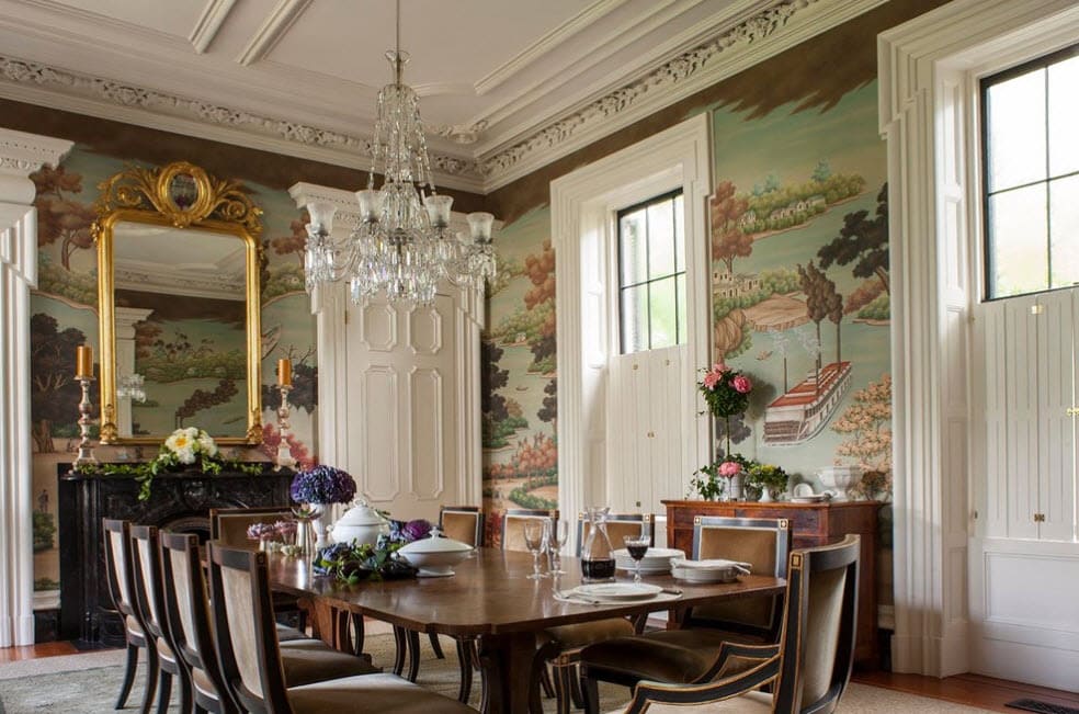 Шикарный стиль часто дополняется реалистичным пейзажем, воплощающим мечту о золотом веке. Такая интерьерная роспись никогда не покажется банальной или скучной. Kлассика позволит легко отказаться от национального колорита, если дополнить его традиционными материалами и элементами. При этом нет опасений, что она потеряет главную стилистическую линию.