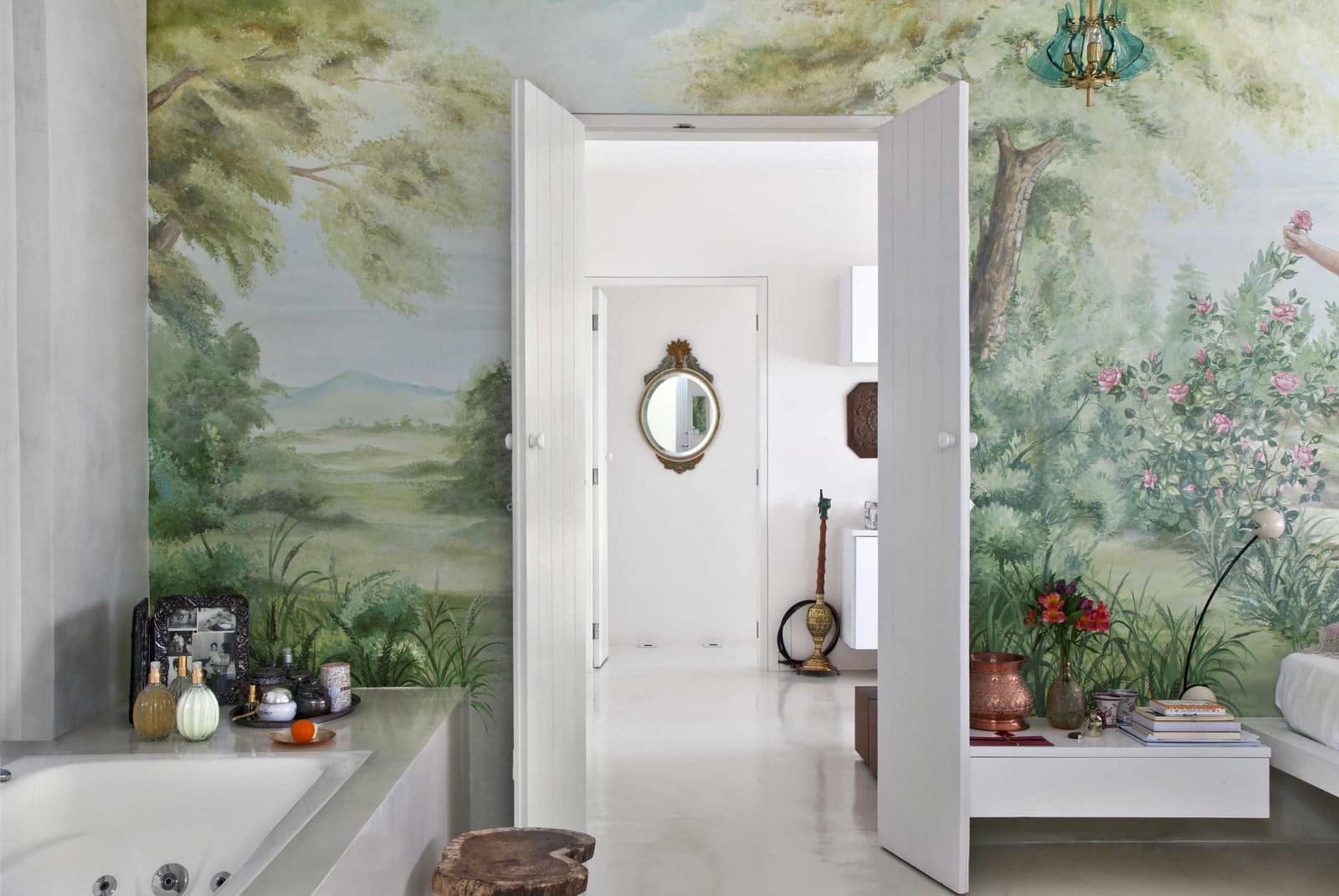 Благодаря широким возможностям краски такая роспись стен в интерьере может выглядеть совершенно по-разному: от пастельных пейзажей, напоминающих фрески, до кислотных граффити.