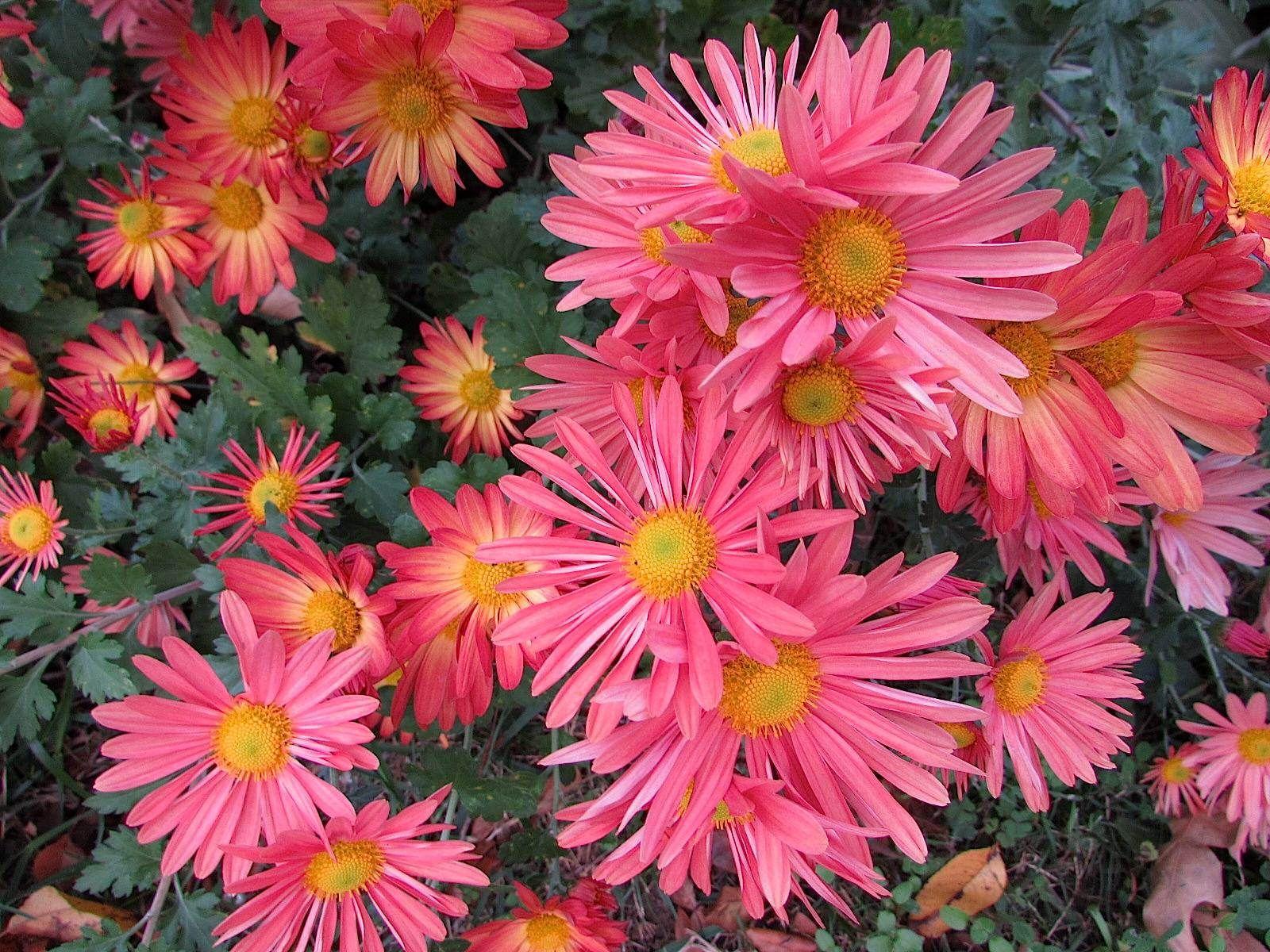 Хризантема мелкоцветковая, или хризантема корейская – вид, представляющий морозостойкие растения, которые попросту называют «дубками» за форму листьев, напоминающую дубовые. В высоту кусты этих хризантем достигают от 25 до 120 см. На них формируются многочисленные соцветия диаметром от 2 до 10 см, простые и махровые, окрашенные во всевозможные цвета. Сорта: