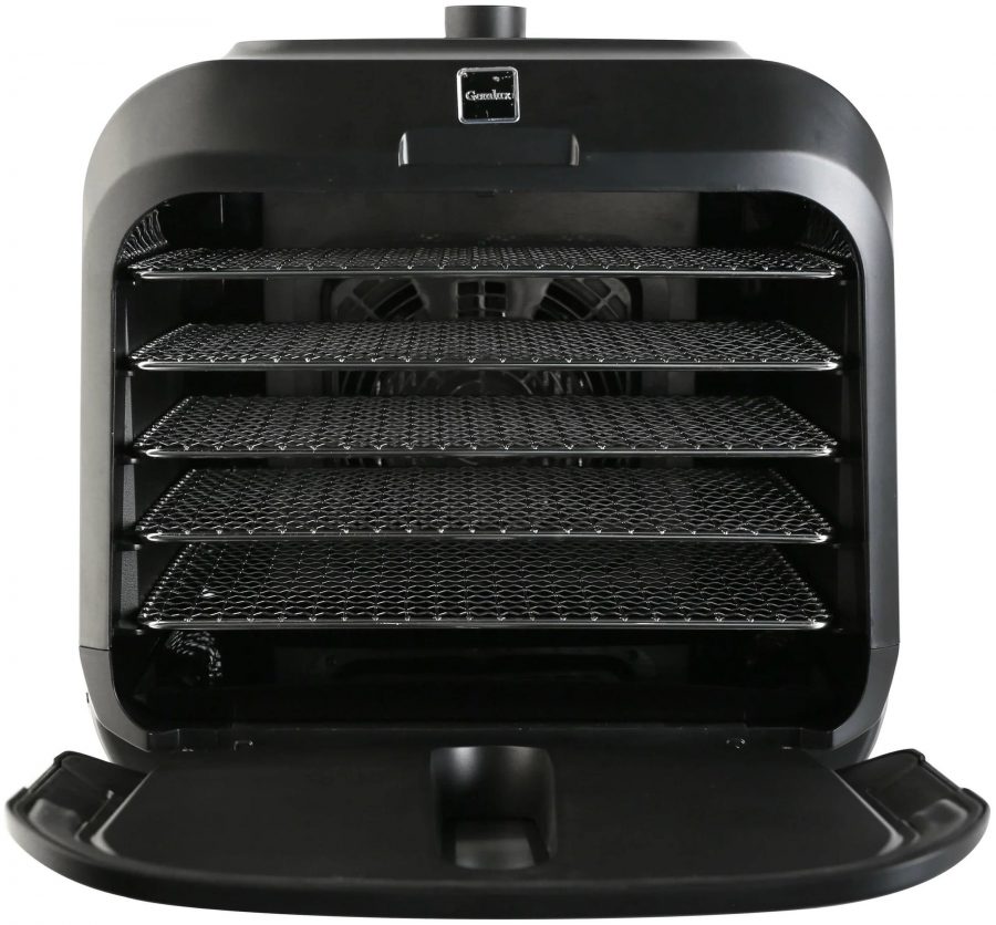 ИК сушилки появились на рынке недавно, но они намного лучше конвективных моделей. После обработки продукты сохраняют все полезные вещества. В стандартных дегидраторах нагревается воздух, а только потом фрукты. Инфракрасный нагреватель обеспечивает максимальную эффективность. Прибор не расходует энергию на повышение температуры воздуха, а сразу аккумулирует потоки света на продуктах. А еще оборудование обеспечивает равномерный обдув. Инфракрасный излучатель позволяет сократить время сушки на 1,5 часа по сравнению со стандартными вариантами. Более того, помимо сушки фруктов и трав, дегидратор позволяет готовить пастилу и йогурт. При желании прибор можно использовать на предприятиях общественного питания и торговли. Его функционал позволяет готовить вяленую рыбу и мясо. Управлять работой оборудования легко благодаря таймеру на 99 часов. Внутри 5 полок из нержавеющей стали, на корпусе из черного пластика есть ЖК-дисплей.