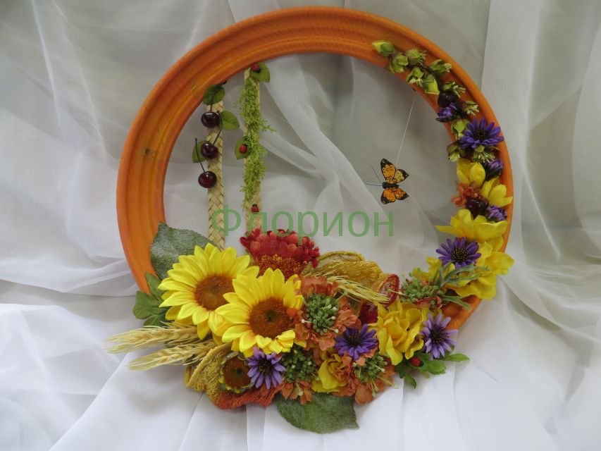 Композицию в виден искусственных цветов, зелени и фруктов плотно располагают на этой губке, чтобы вовсе не оставалось свободного места. Они бывают разных размеров.