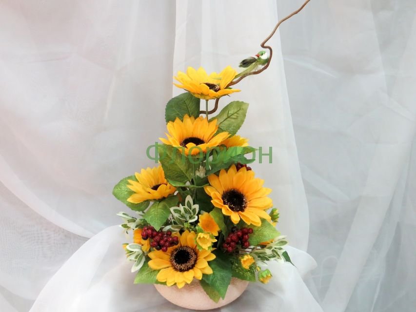 А как сделать композицию из искусственных цветов, покажет третий сюжет: