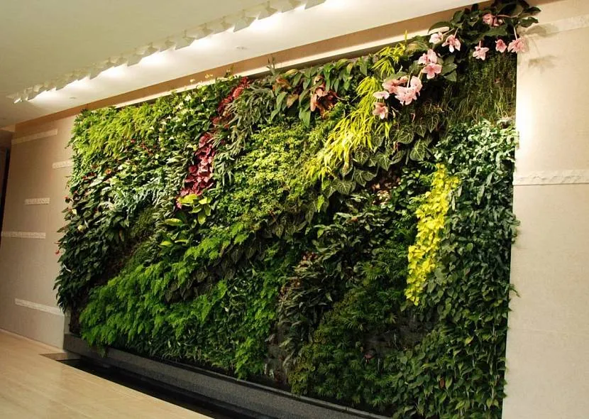 Модный тренд — флористическая стена. Оживляет интерьер, привносит ощущение присутствия природных элементов ландшафта. Уход за натуральной флористической стеной сложный, трудоёмкий. Искусственные растения смотрятся как натуральные, но за ними значительно легче ухаживать.
