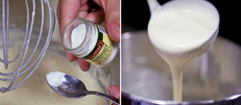 Шаг 7. Затем по своему желанию, добавляем ванильный сахар, эссенцию или экстракт. По консистенции тесто должно получиться сливочным, легко наливаться, но не очень жидким.