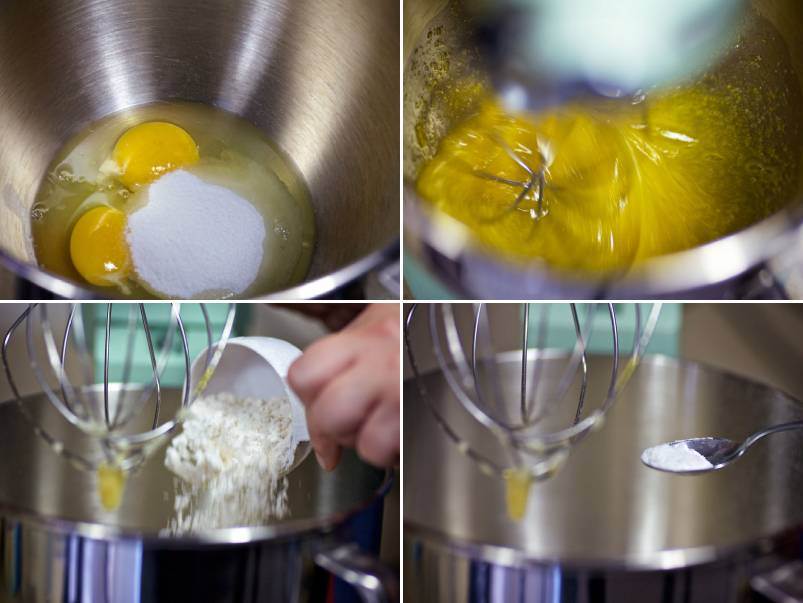 7.Белки нужно взбить в пышную пену. Для этого сначала взбивайте одни белки. Когда появится пена, добавьте лимонный сок, с ним пена будет более стойкая.