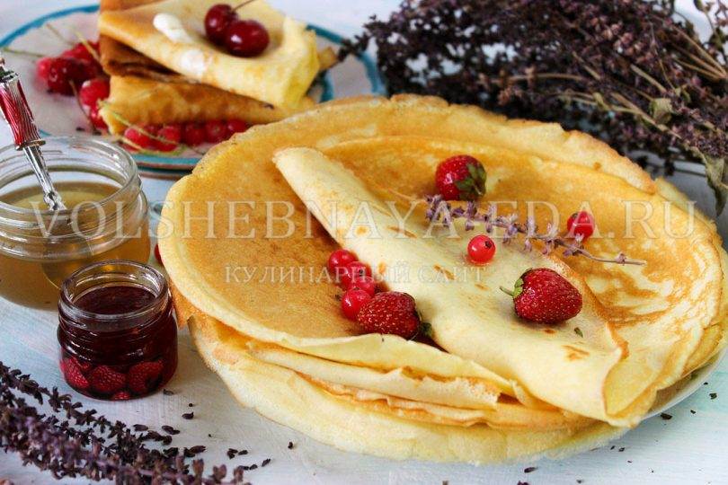 Блины пропекаются достаточно быстро и остаются пышными после снятия со сковороды.
