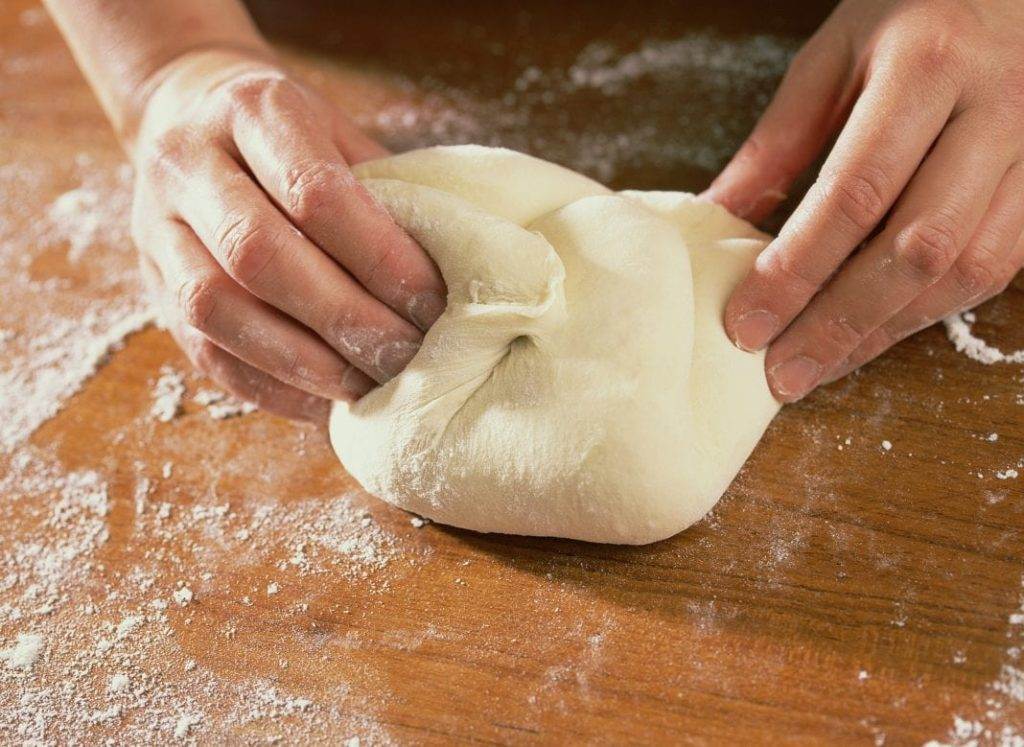- Месить тесто нужно недолго, если оно получается тугим, добавить еще немного воды.