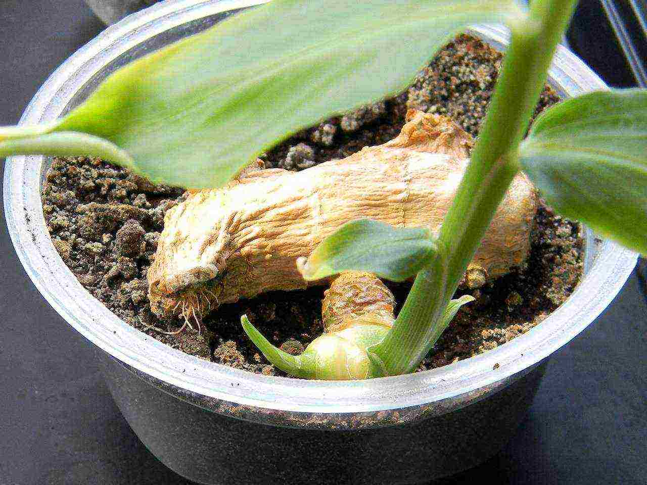 - Осмотрите корень на наличие потемневших участков, подпорченных мест, срежьте, если имеются. Не счищайте кожицу, она предотвращает обезвоживание клубня.