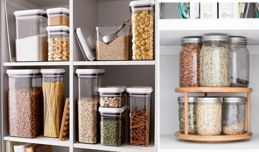 Проще всего тем хозяйкам, у которых есть специальное помещение для припасов. Там можно правильно хранить продукты либо в фабричных упаковках, либо в специальных емкостях. Такая кладовка должна: