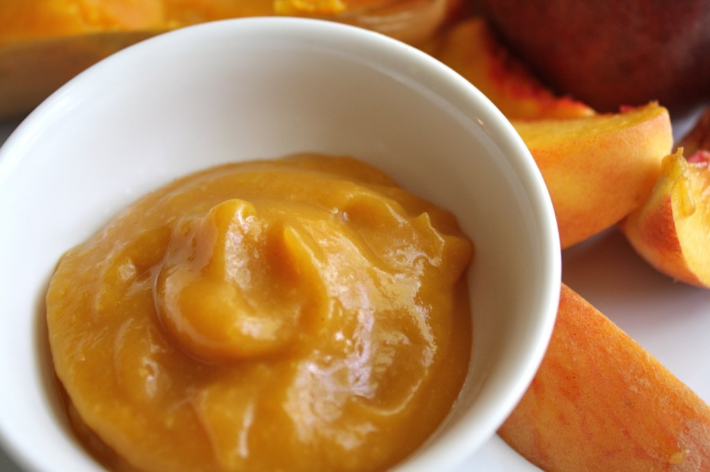 Очищенные фрукты пробивают блендером до однородной массы. При необходимости, можно добавить сахарный песок, но если вы готовите такую заготовку для прикорма ребенка, то этого лучше не делать.