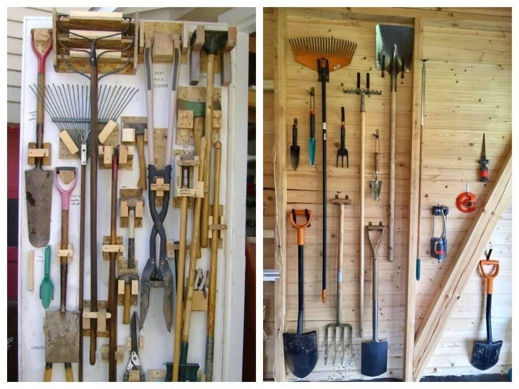 Чтобы сделать хранение садовых инструментов удобным, рекомендуется воспользоваться готовыми идеями специалистов.