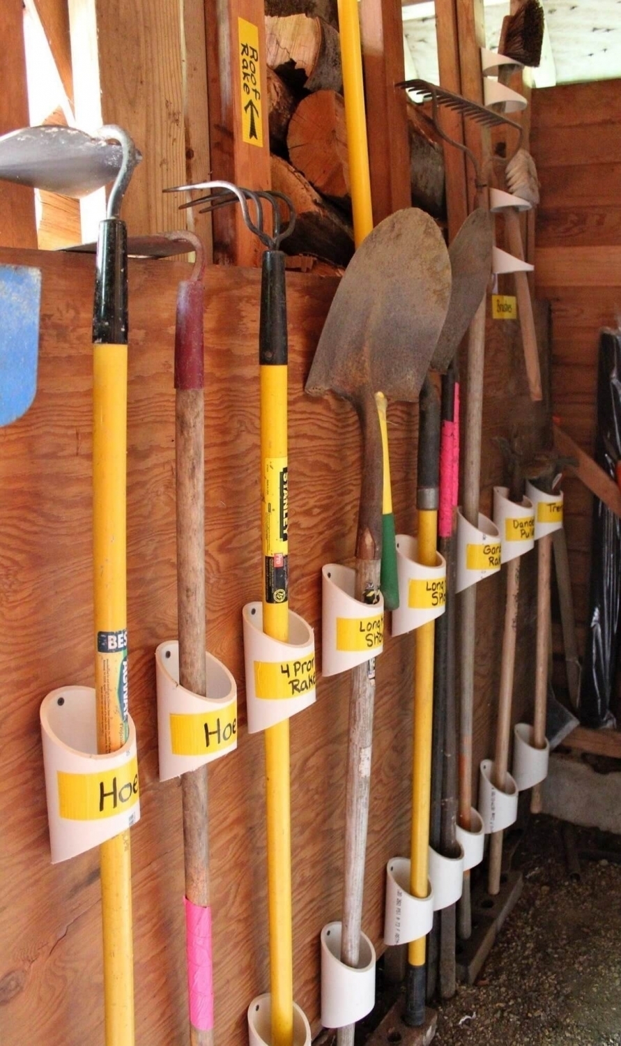 Вертикальное хранение инструментов в сарае