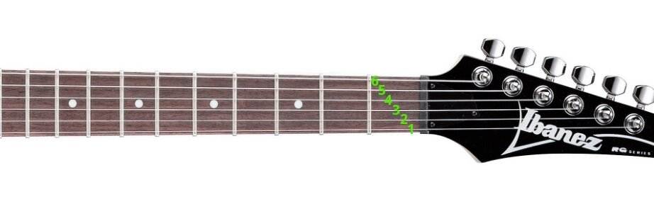 Кроме того, многие точки пронумерованы между собой, и эти цифры соответствуют пальцам, которыми надо зажимать струну.