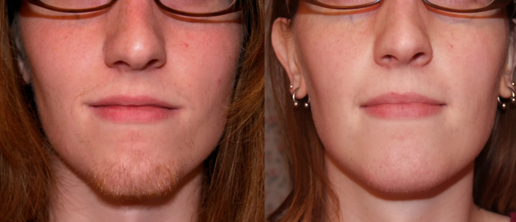 Как правило, в данной области волоски растут не слишком интенсивно. Однако методика действует только на те из них, что находятся в фазе роста (спящие луковицы остаются незатронутыми). Именно поэтому после процедуры часть волос отрастает снова. Без предварительного осмотра пациента трудно сказать, сколько именно сеансов потребуется для полного устранения проблемы: скорее всего, около пяти.