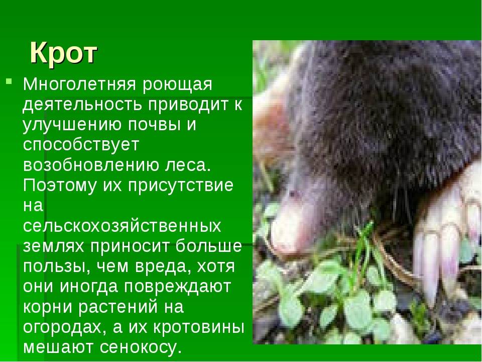 - Роя многочисленные и замысловатые ходы, они повреждают корневую систему, портят корнеплоды. Но питаются исключительно насекомыми: такое вредительство – «побочный эффект» от их подземных перемещений.