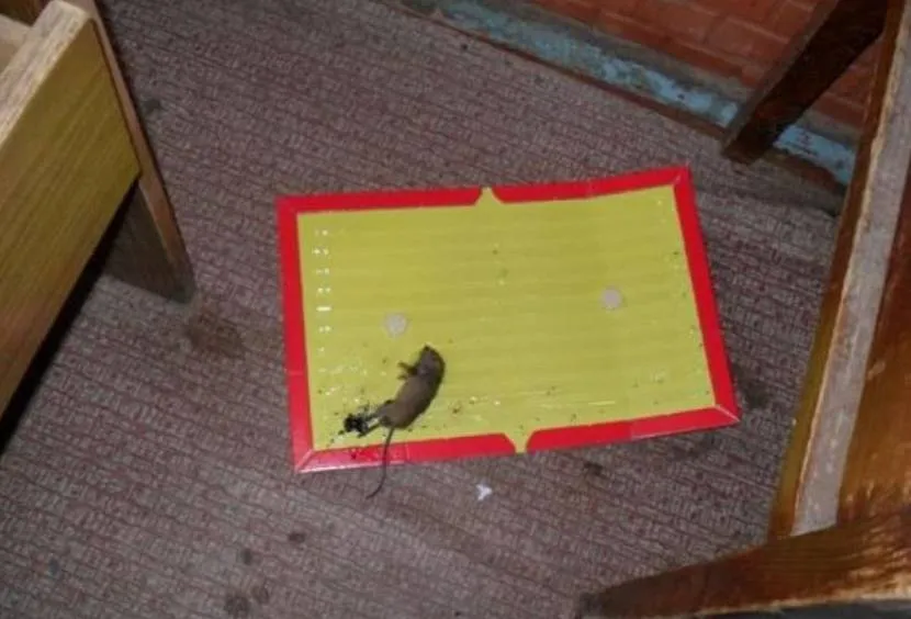 В этом случае понадобится специальный клей от мышей. Консистенция намазывается на картонку или что-то другое, в центр помещается приманка. Попавшая в клей мышь не может освободиться и погибает от обезвоживания.