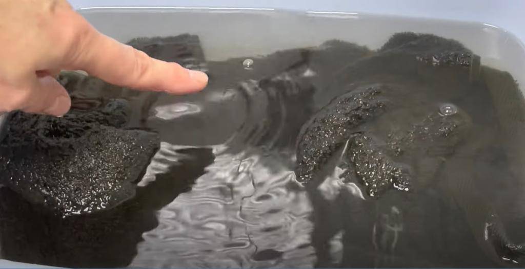 Далее губку смачивают в смеси мыла и воды, обрабатывают загрязненный участок и оставляют минут на 5-10 минут. Остатки средства удаляются влажной тряпкой.