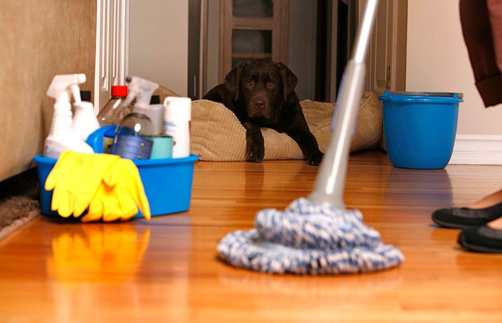 Мойте пол как можно чаще. Постепенно он впитывает запах, а также является источником бактерий. Поскольку питомец спит и играет на полу, происходит взаимный «обмен». Идеальное покрытие – плитка. Её проще очистить от загрязнений. Можно купить в зоомагазине специальное средство для избавления от запаха псины. А также хорошо справляются с этой задачей моющие пылесосы.