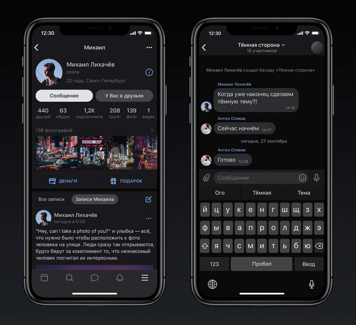 Наличие темной темы ВКонтакте актуально для мобильной версии 5.2. Только недавно стало известно о том, что использовать нововведения можно для Айфон.