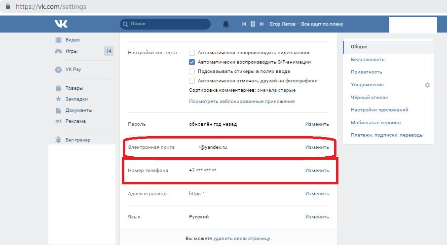 - в разделе Общее есть опция Номер телефона, в ней нужно нажать на кнопку Изменить;