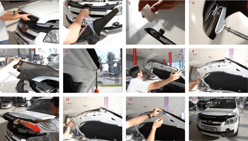 Что касается дефлектора капота, то тут крепление осуществляется с помощью специальных кронштейнов или лепестков. А в комплекте с изделием поставляется еще и инструкция. В случае с дверьми все обстоит несколько иначе. Крепление дефлектора осуществляется на двухстороннем скотче, при использовании которого многие водители допускают ошибки и теряют изделие на большой скорости.