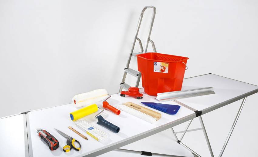 Для поклейки обоев понадобится определенный набор инструментов, состоящий из предметов, которые чаще всего есть в любом доме