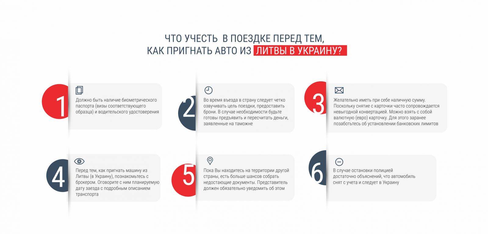 - Перед тем, как пригнать машину из Литвы в Украину, познакомьтесь с брокером. Оговорите с ним планируемую дату заезда с подробным описанием транспорта. Пока Вы находитесь на территории другой страны, есть больше шансов собрать недостающие документы. Представитель должен обязательно уведомить об этом.