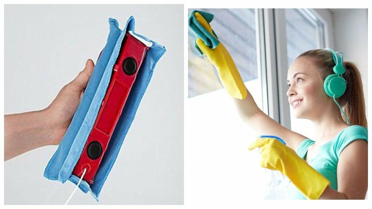 Технологии нашли распространение и в современных приборах для уборки. Например, магнитная щетка, представляющая собой две губки с магнитом и чистящим материалом, похожим на фетр. Такая губка помогает отмыть стекла сразу с двух сторон, что особенно актуально для жителей высоких этажей. Поэтому ее рекомендуют для правильного мытья окна в квартире без разводов в домашних условиях.
