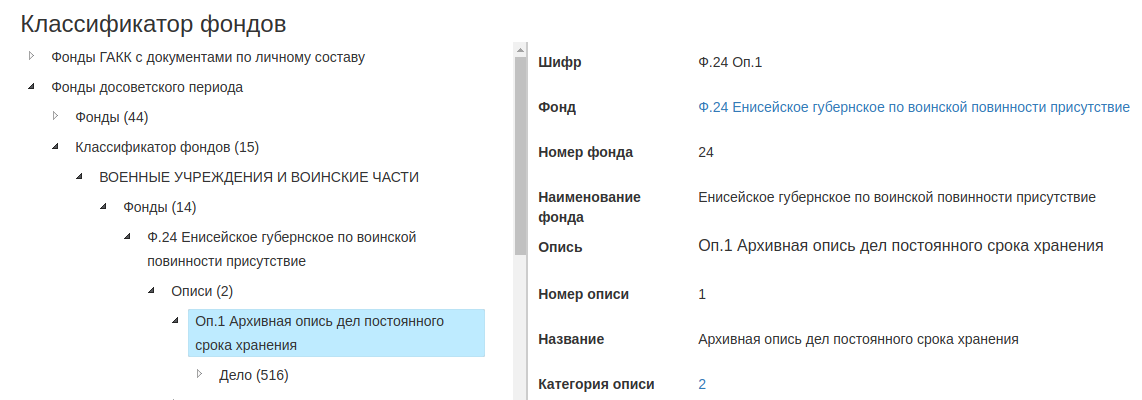 Пример путеводителя по фондам на сайте Государственного архива Красноярского края