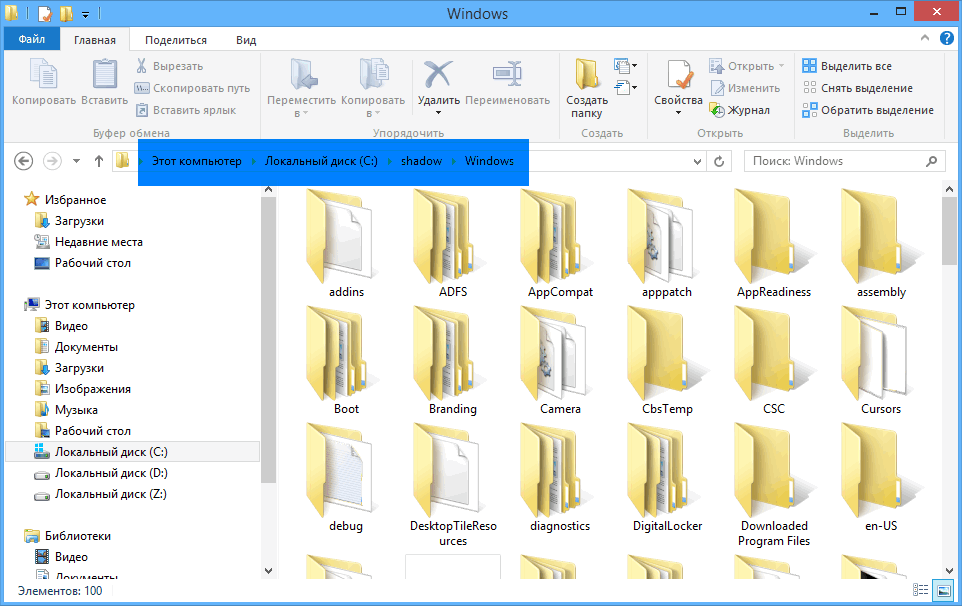 После выполнения команды в корне диска С у вас появится ссылка на каталог shadow, перейдя по ней, вы попадете внутрь выбранной точки восстановления.