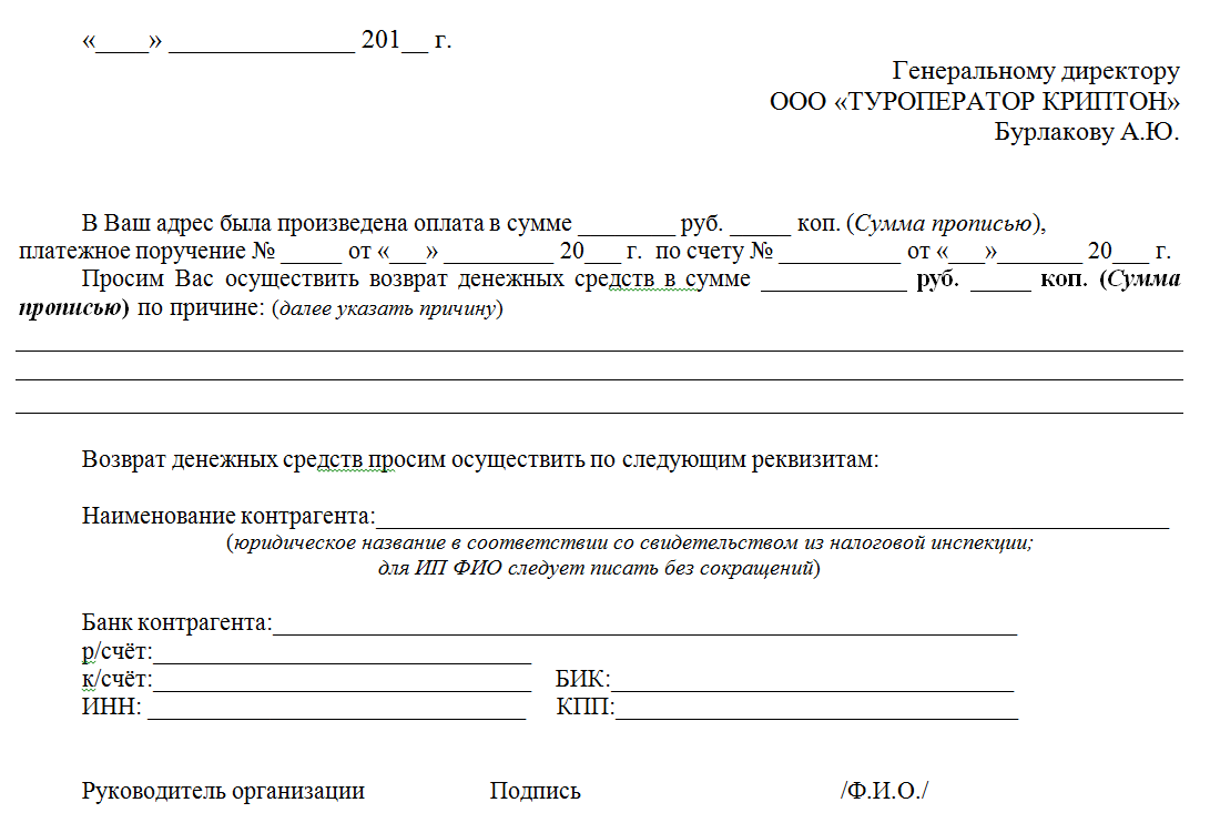 Ведение бизнеса редко обходится без случаев, когда необходимо вернуть ранее уплаченные суммы на расчётный счёт. В этом случае контрагенту необходимо направить письмо о возврате денежных средств.