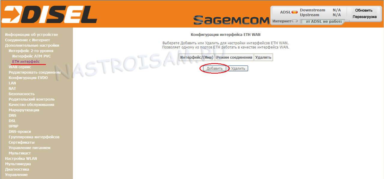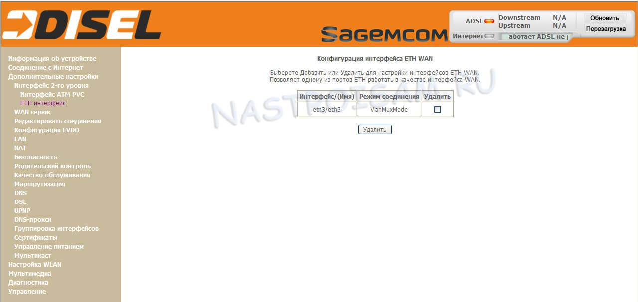 Здесь тоже всё удаляем. Переходим в подраздел «ETH-интерфейс»: