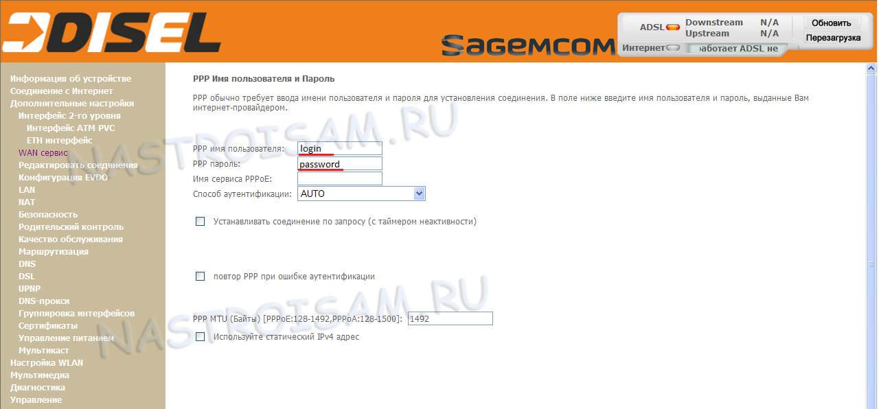 Подключение к Интернету по линии ADSL или Ethernet