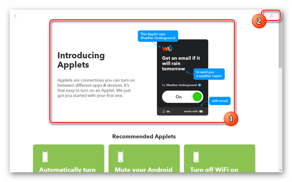 На следующем этапе в правом верхнем углу кликните по значку с крестиком, по надобности внимательно ознакомившись с инструкцией по использованию сервиса. Это можно быть полезно в будущем.