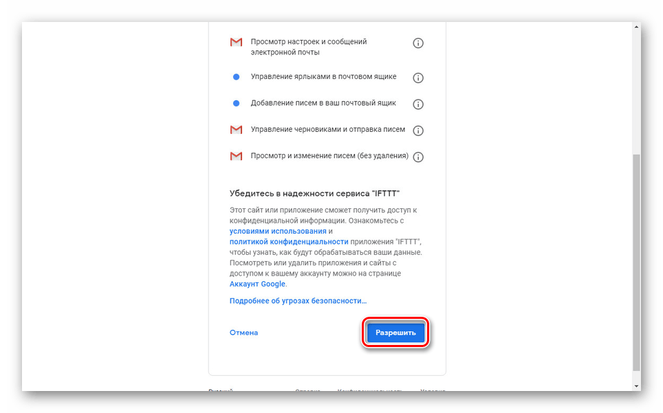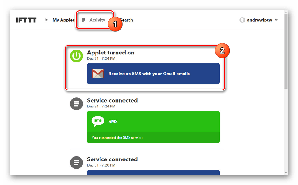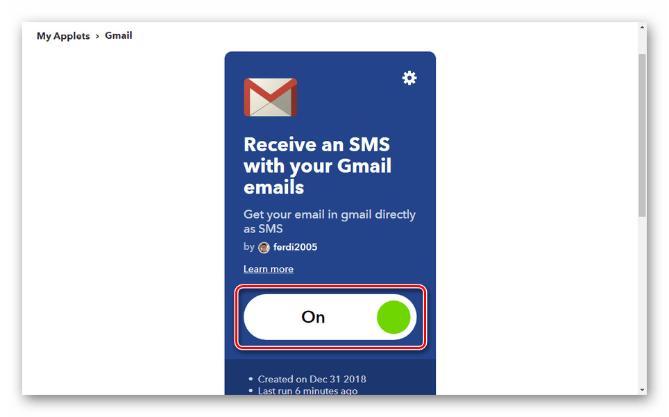 На сегодняшний день почтовый сервис Gmail рассматриваемой нами функции не предоставляет, заблокировав последнюю возможность подобного информирования в 2015 году. Однако, несмотря на это, существует сторонний сервис IFTTT, позволяющий не только подключить SMS-информирование о почте Google, но и подключить множество других, по умолчанию недоступных, функций.