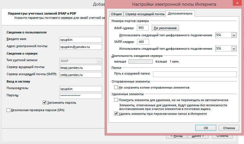 - имя можно любое, но лучше, как в моем случае оно отображает принадлежность к определенному ящику, а у меня добавлено три;