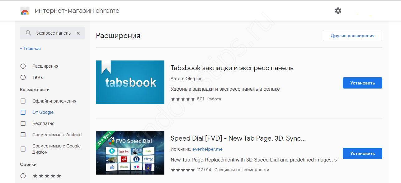 Существует специальное расширение, которое добавляет возможность работы с закладками сайтов в экспресс панели гугл хром. Ставиться оно из официального магазина приложений Google за 1 минуту совершенно бесплатно.