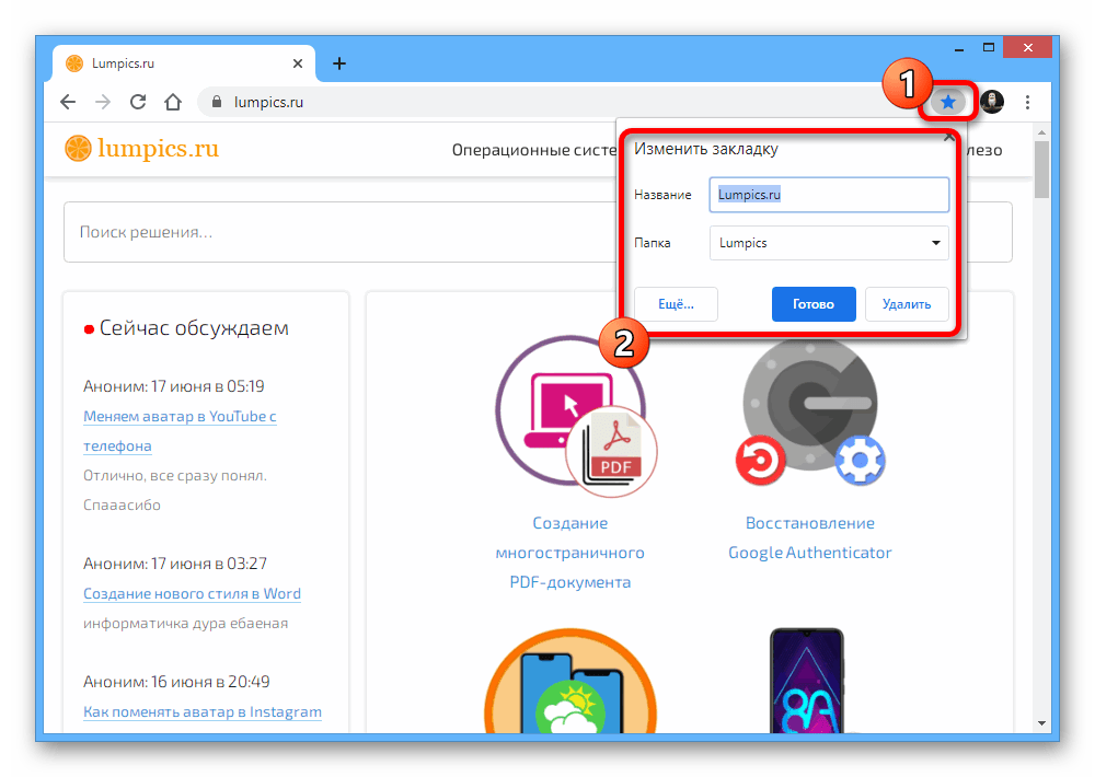 Наиболее простой метод создания быстрой ссылки в Хроме заключается в посещении нужного сайта с последующим использованием значка со звездочкой в правой части адресной строки. Данное действие приведет к моментальному сохранению URL-адреса в последнем использованном месте с возможностью изменения параметров. Узнать больше деталей по части работы с закладками вы можете в отдельной инструкции на сайте.