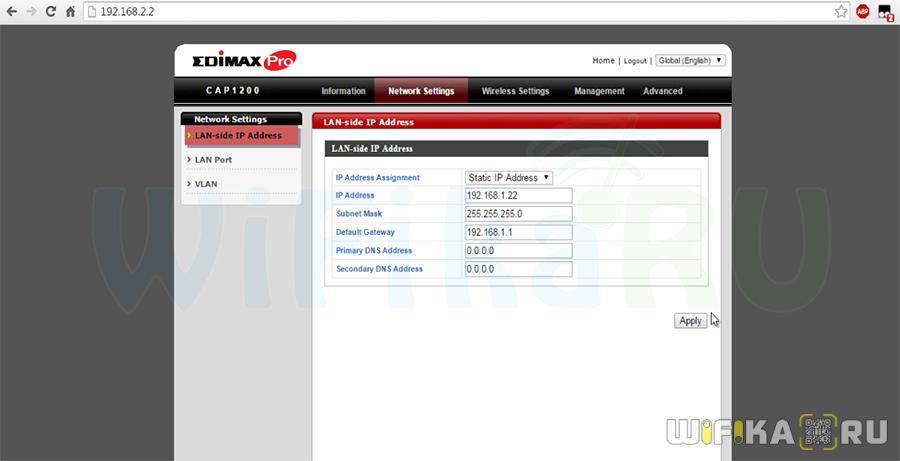 Настройка подключения точек доступа Edimax CAP1200 к интернету