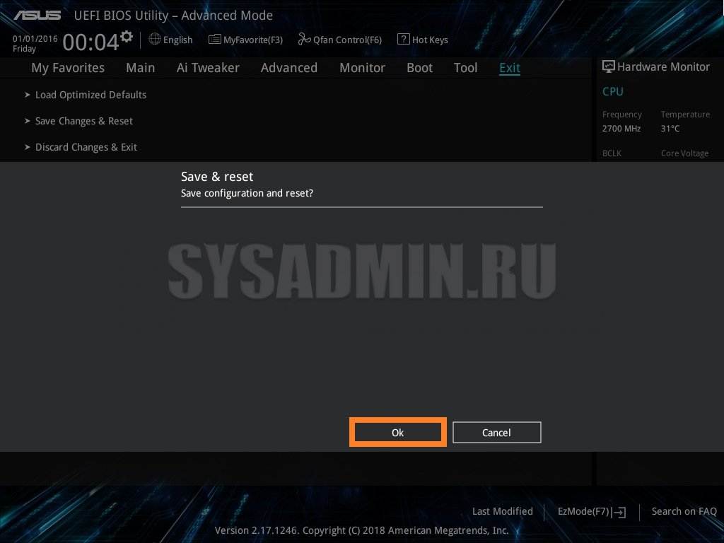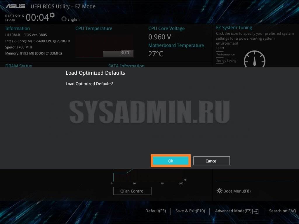 Сброс настроек BIOS в ASUS UEFI BIOS