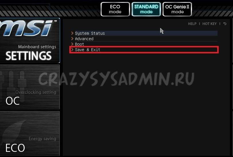 Теперь нужно выбрать пункт “Exit & Save Changes”.