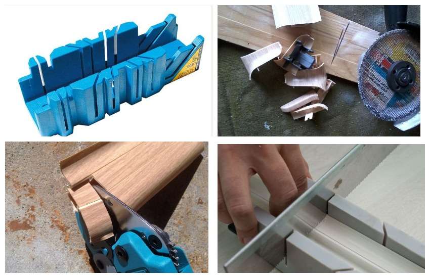 Плотницкое стусло — это устройство для резов под определенным наклоном. Его используют с ножовкой. В принципе, можно стусло сделать самостоятельно, собрав направляющую из досок и сделав в стенках пропилы. В продаже же есть различные модели стоимостью от 15$ до нескольких сотен долларов. Отличаются они возможностями, материалами, хотя все называются «стусло». Профессиональные модели сделаны на основе хорошей ножовки, имеют шкалу, которая позволяет выставлять пилу как надо. С таким инструментом не проблема выставить любой нужный угол реза, чтобы правильно отрезать плинтус для идеальной стыковки.